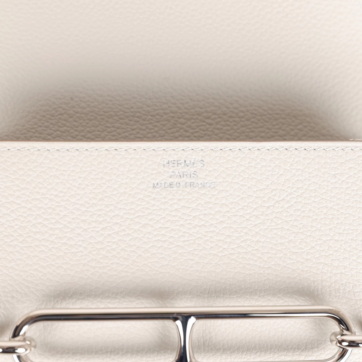 The interior is lined in Gris Perle chevre.