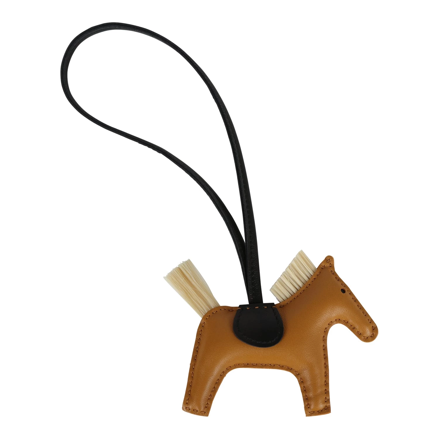 This Rodeo Bag Charm is in Sesame with Black Milo lambskin leather eyes, holder and saddle, and Craie horse hair accented mane and tail.
