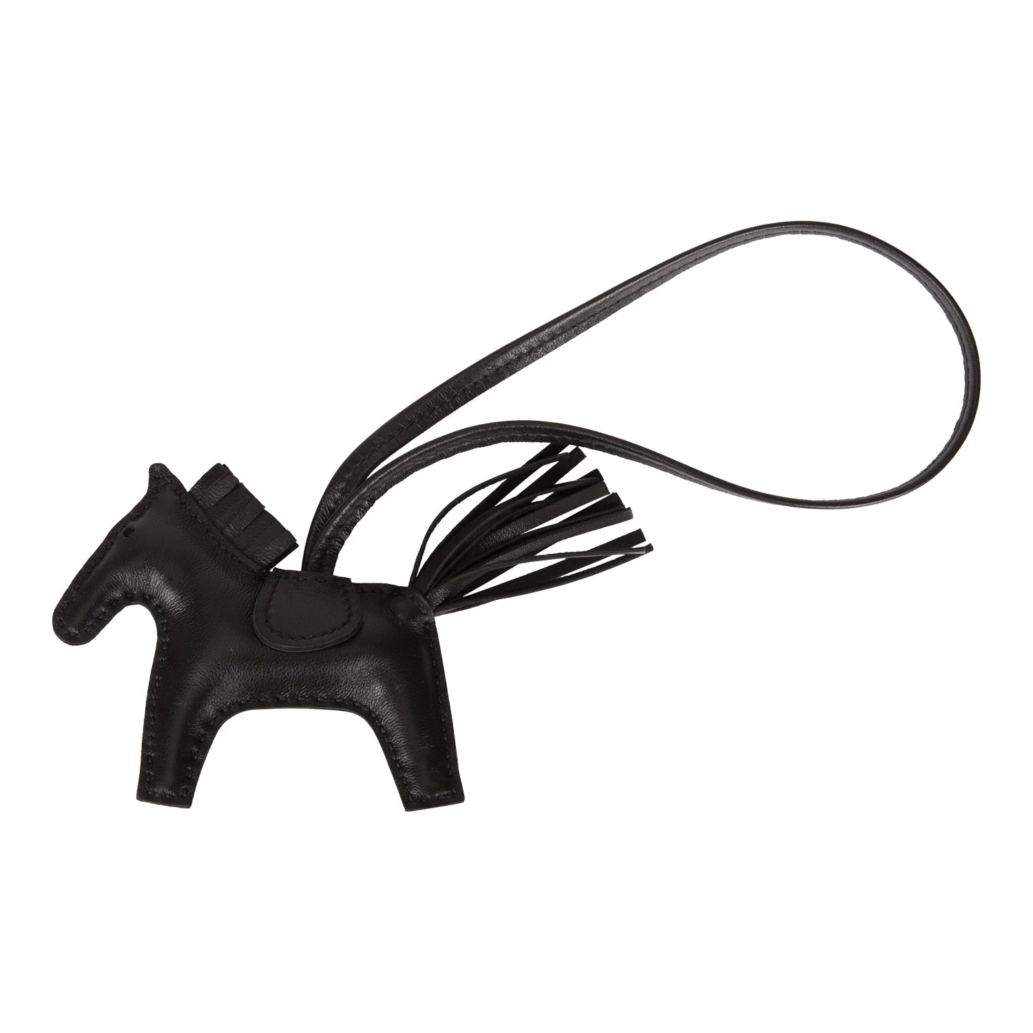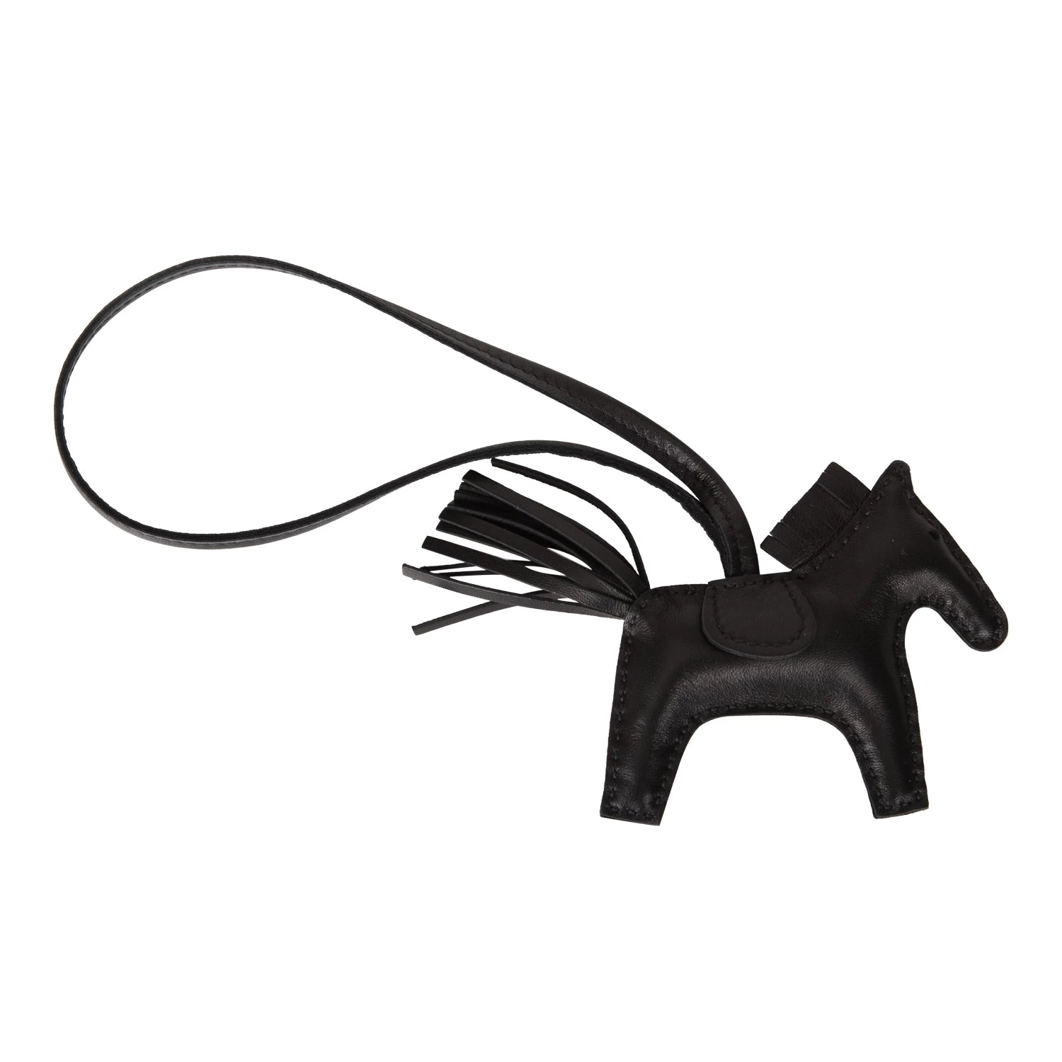 This charm is made of Black Milo lambskin leather with a matching mane, saddle, tail and holder.
