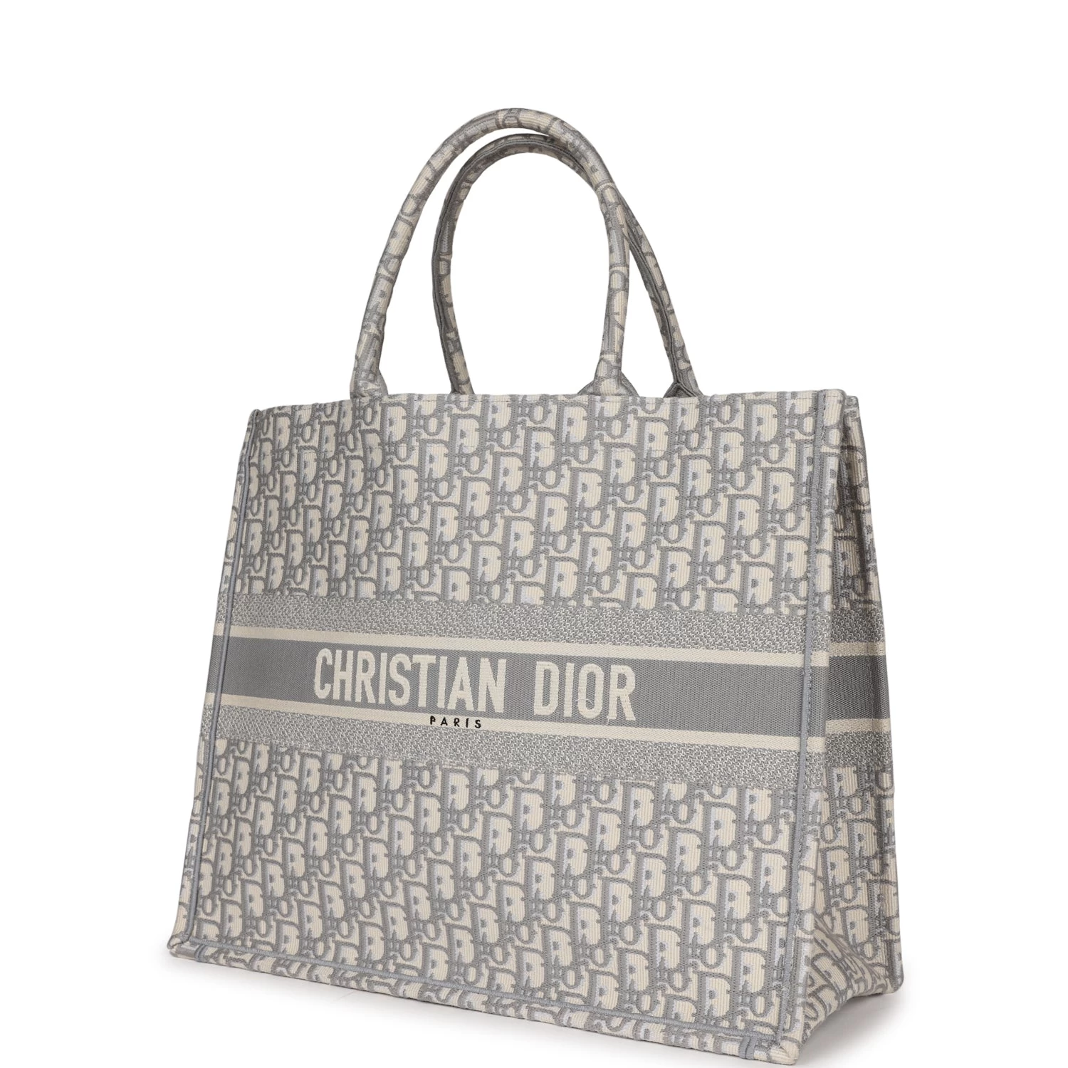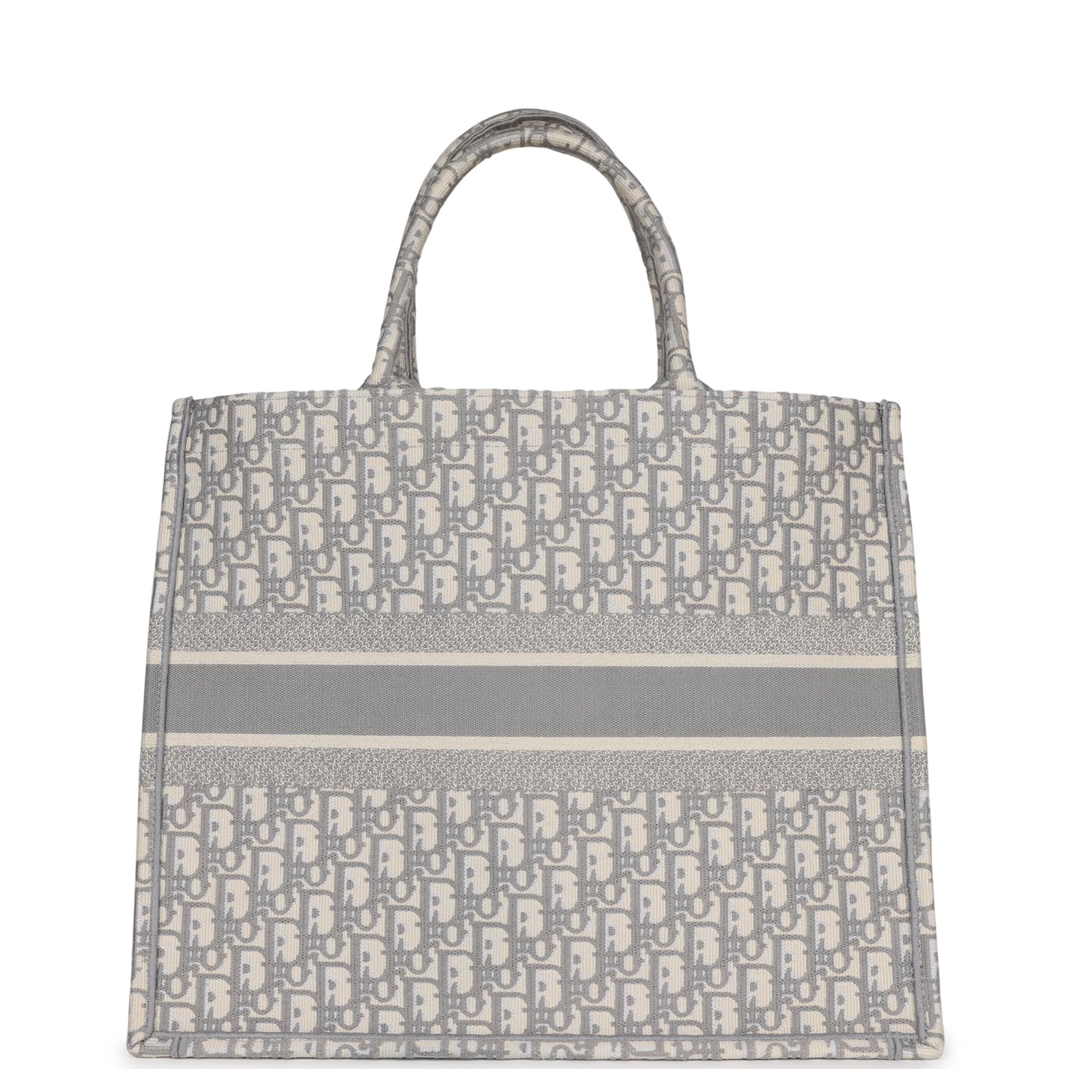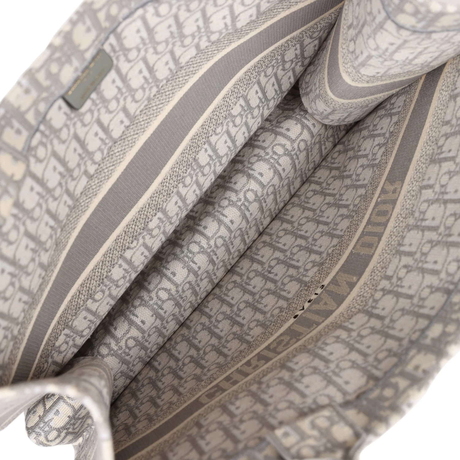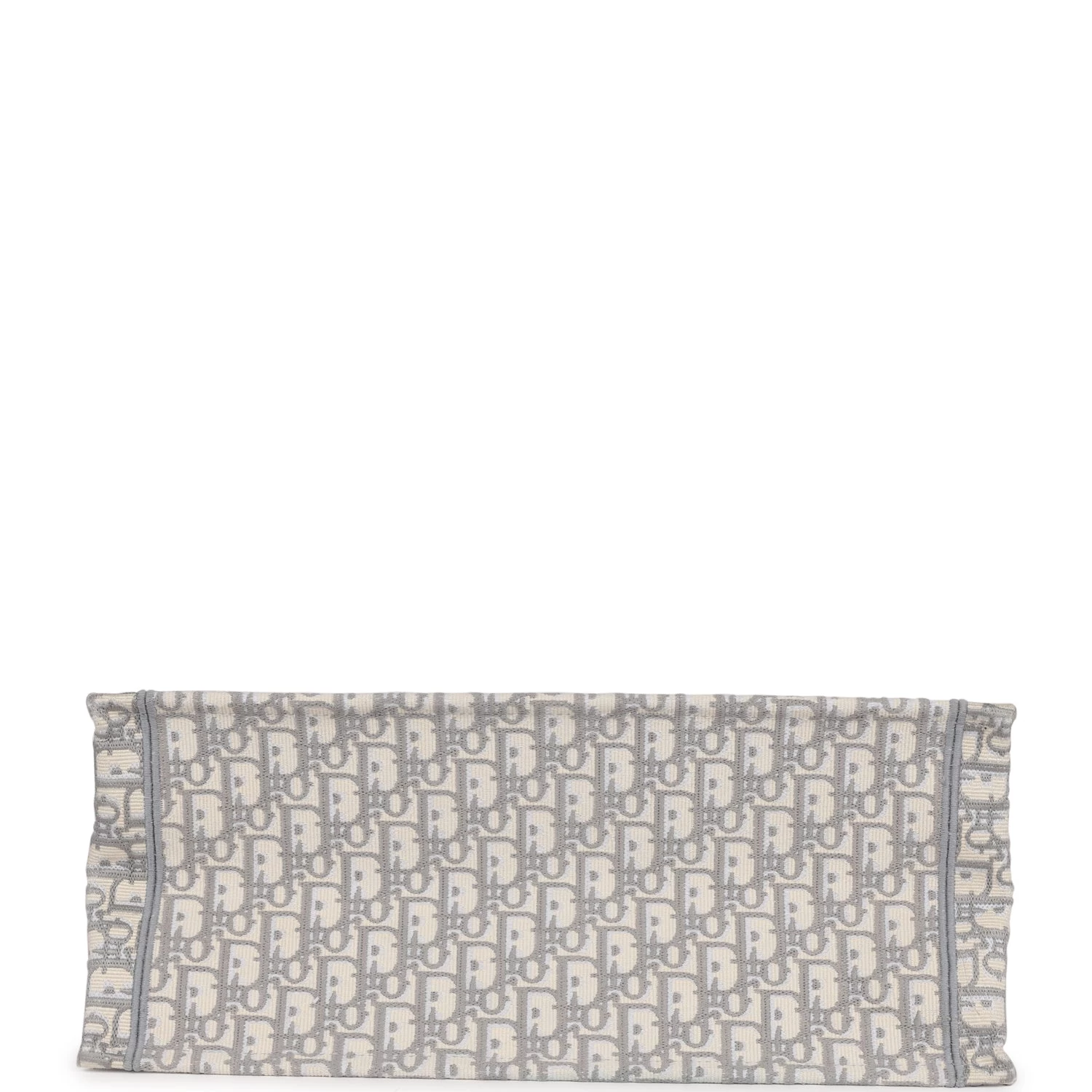 This Dior Oblique Embroidered Book Tote is in a Grey and White Canvas and has two matching rolled top handles.