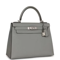 Hermès Hermes Special Order (HSS) Kelly Sellier 28 Gris Mouette Verso Togo Brushed Palladium Hardware