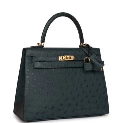 Hermès Hermes Kelly Sellier 25 Vert Cypress Ostrich Gold Hardware