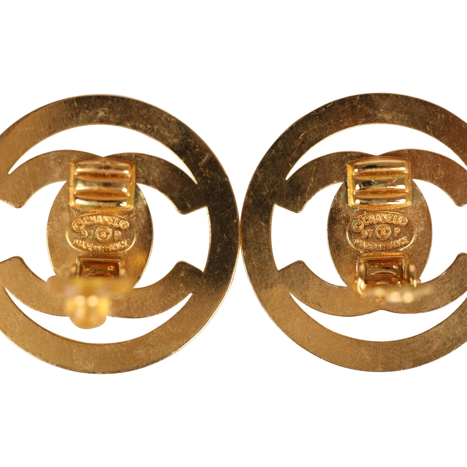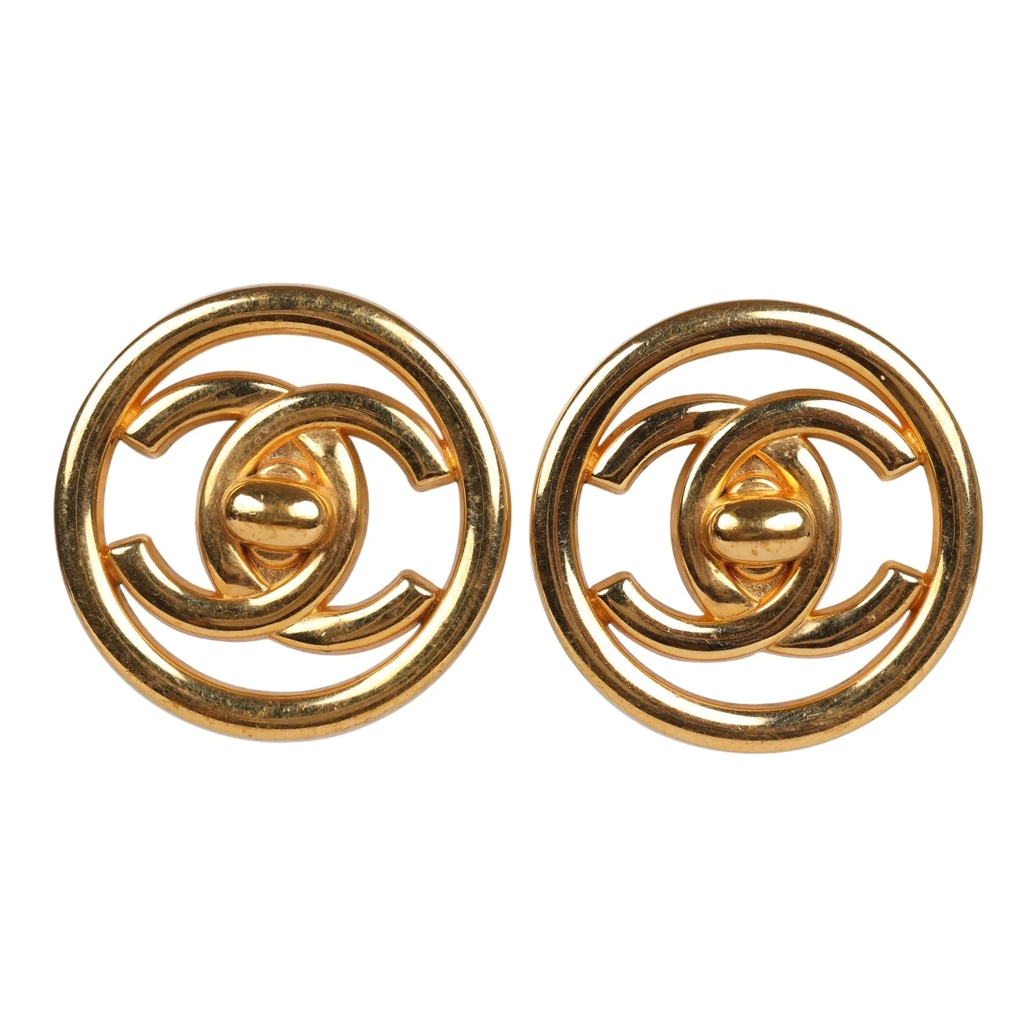 These Vintage CC Circle Turnlock Earrings are in gold tone metal and feature the signature CC turnlocks.