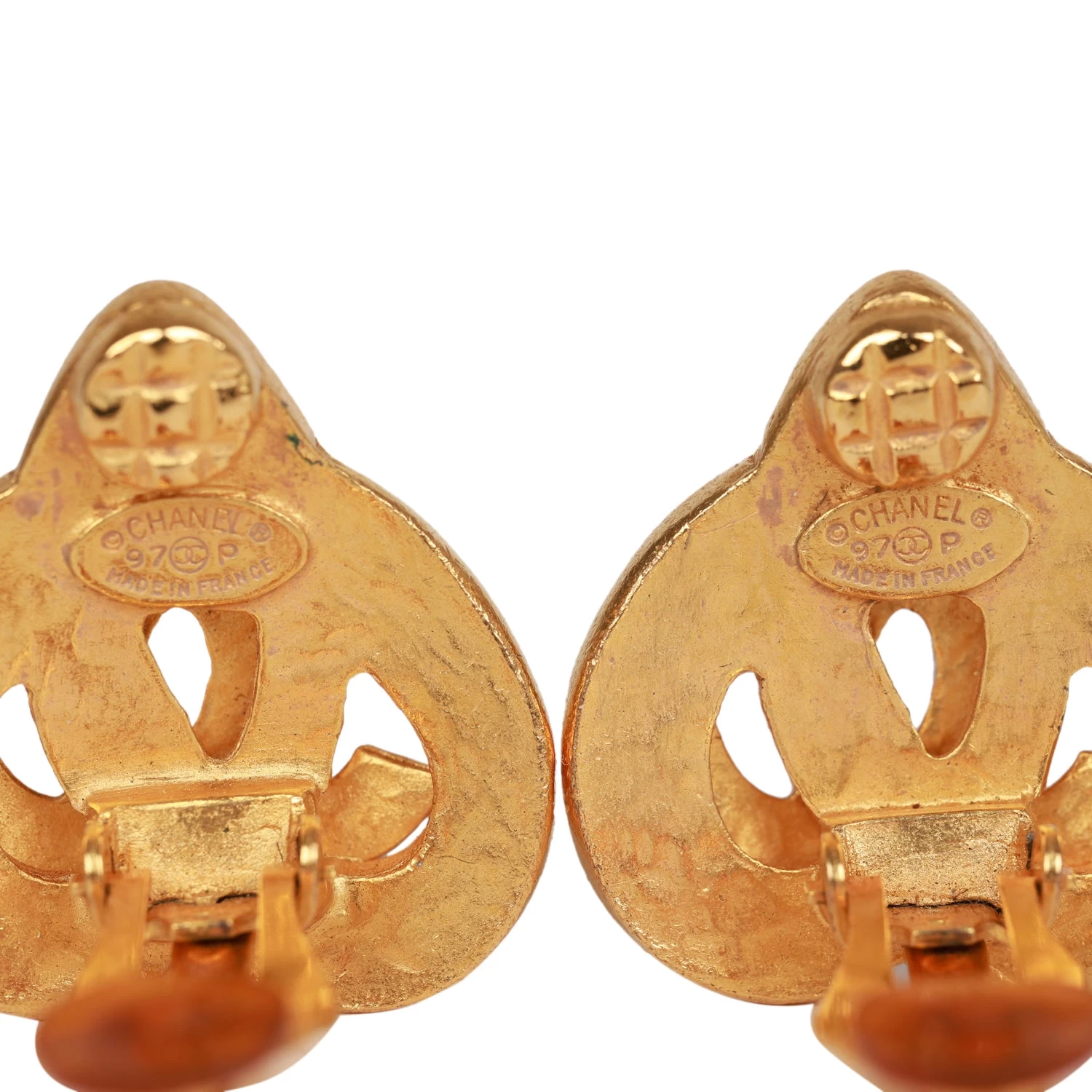 These Vintage 97P Chanel Gold Heart earrings are in gold tone metal with the signature CC logo design and a clip on closure.