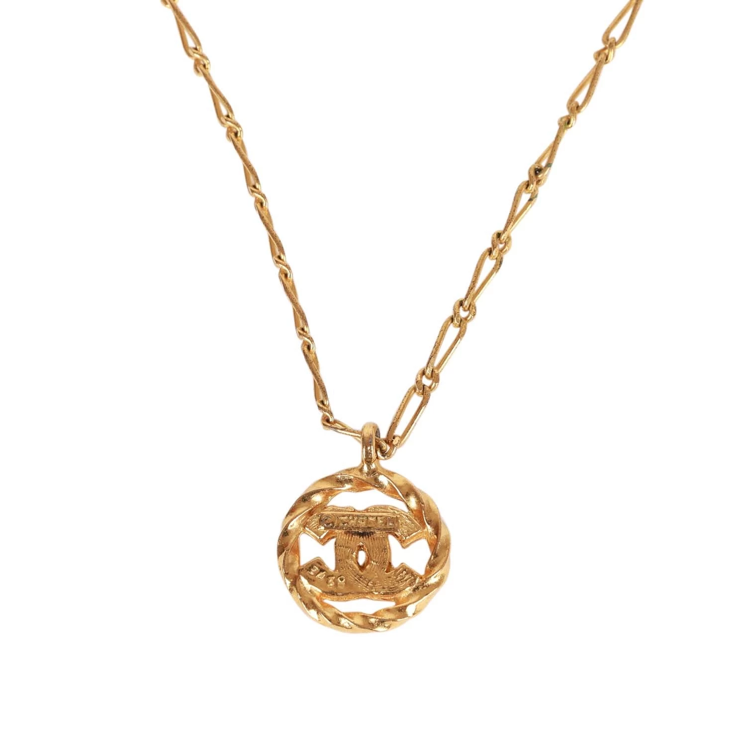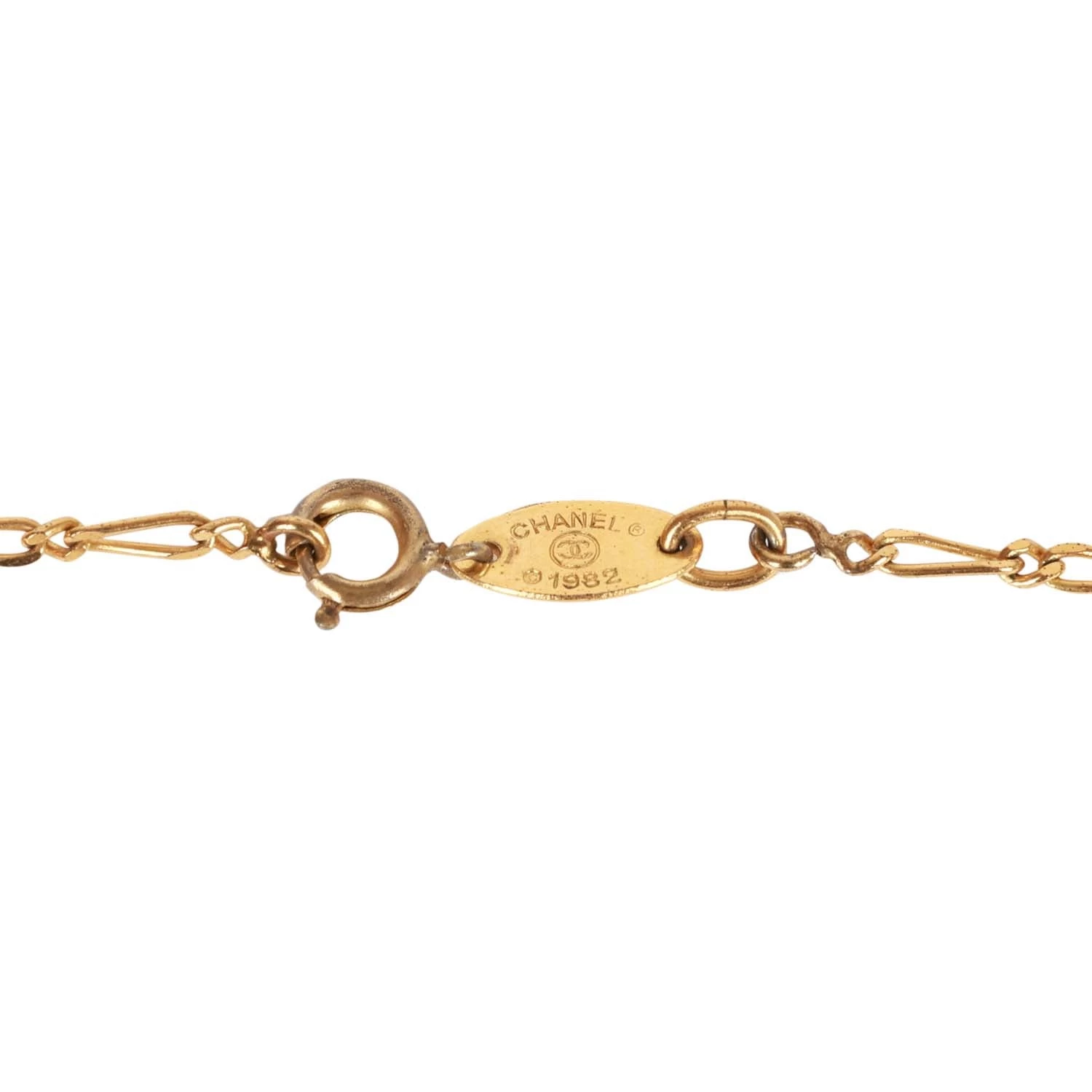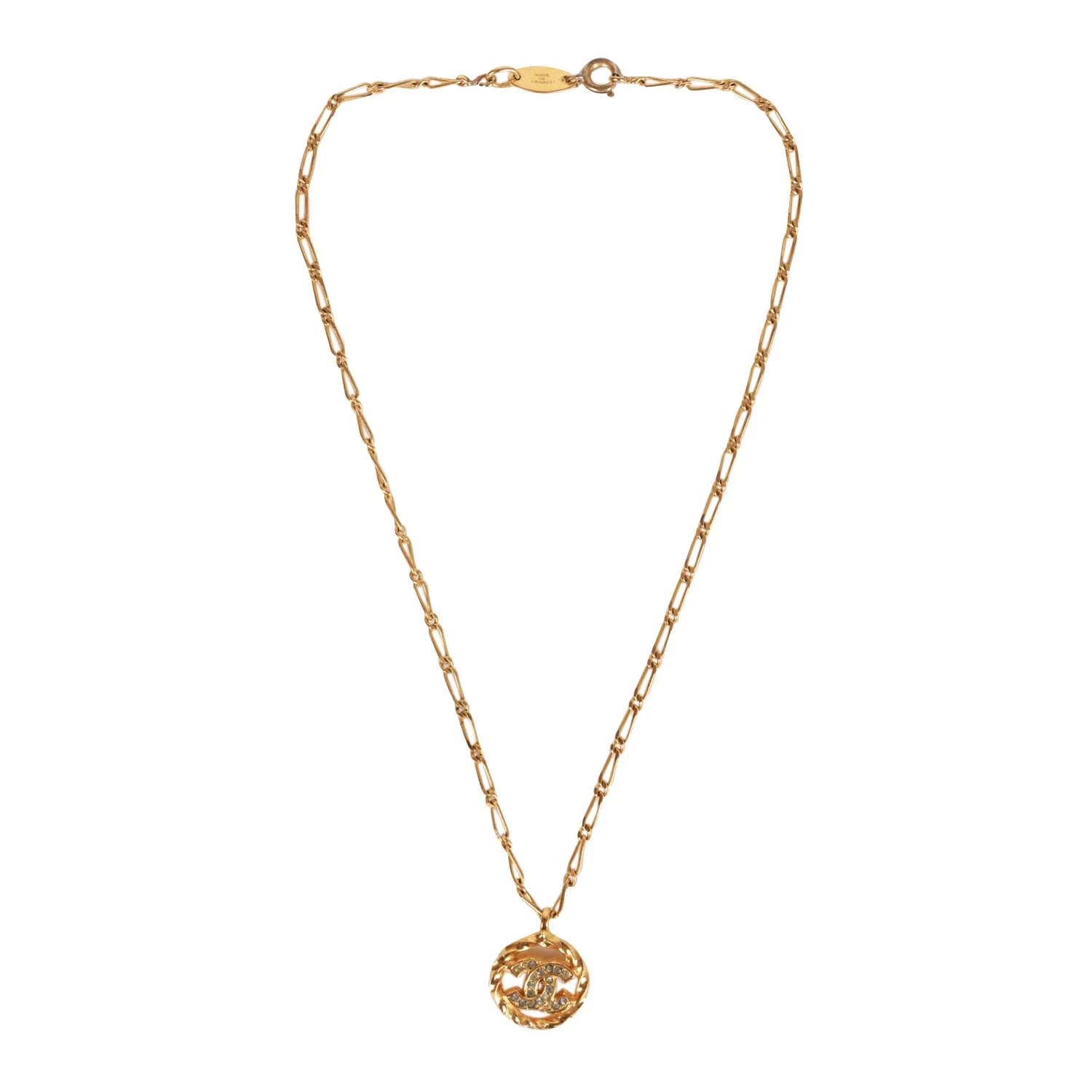 This vintage 1982 necklace features a small classic CC crystal encrusted pendant with a cable style chain and a springring closure.