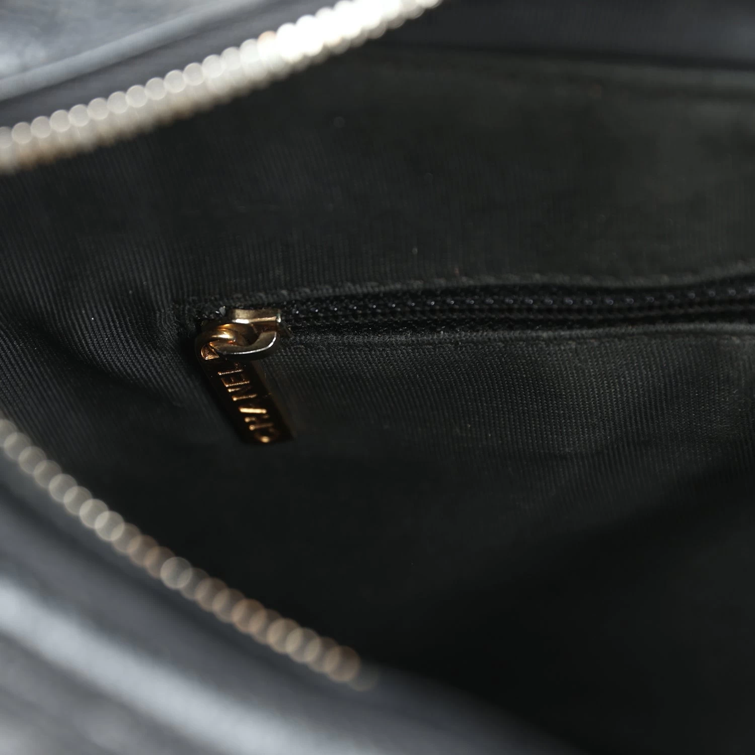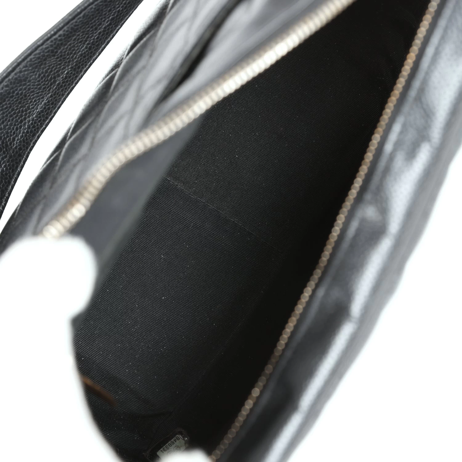 The interior is lined in Black grossgrain fabric and has one zip pocket with a CC logo pull on the rear wall.